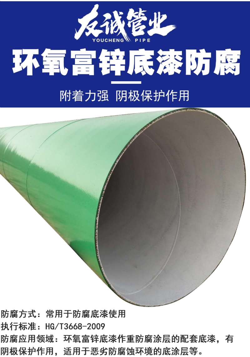 環(huán)氧富鋅底漆是以環(huán)氧樹脂、鋅粉、硅酸乙酯為主要原料,增稠劑、填料、助劑、溶劑等組成的特種涂料.主要用于鋼管、儲罐、鋼結(jié)構(gòu)、集裝箱等.環(huán)氧富鋅底漆是以環(huán)氧樹脂、鋅粉、為主要原料,增稠劑、填料、助劑、溶劑等組成的特種涂料產(chǎn)品,該漆自然干燥快,附著力強(qiáng),防腐蝕能力強(qiáng)等特點(diǎn).由環(huán)氧樹脂為基料配以鋅粉、助劑、聚胺而成.防腐性能優(yōu)異,附著力強(qiáng),漆膜中鋅粉含量高,環(huán)氧富鋅漆防腐螺旋鋼管廠家.